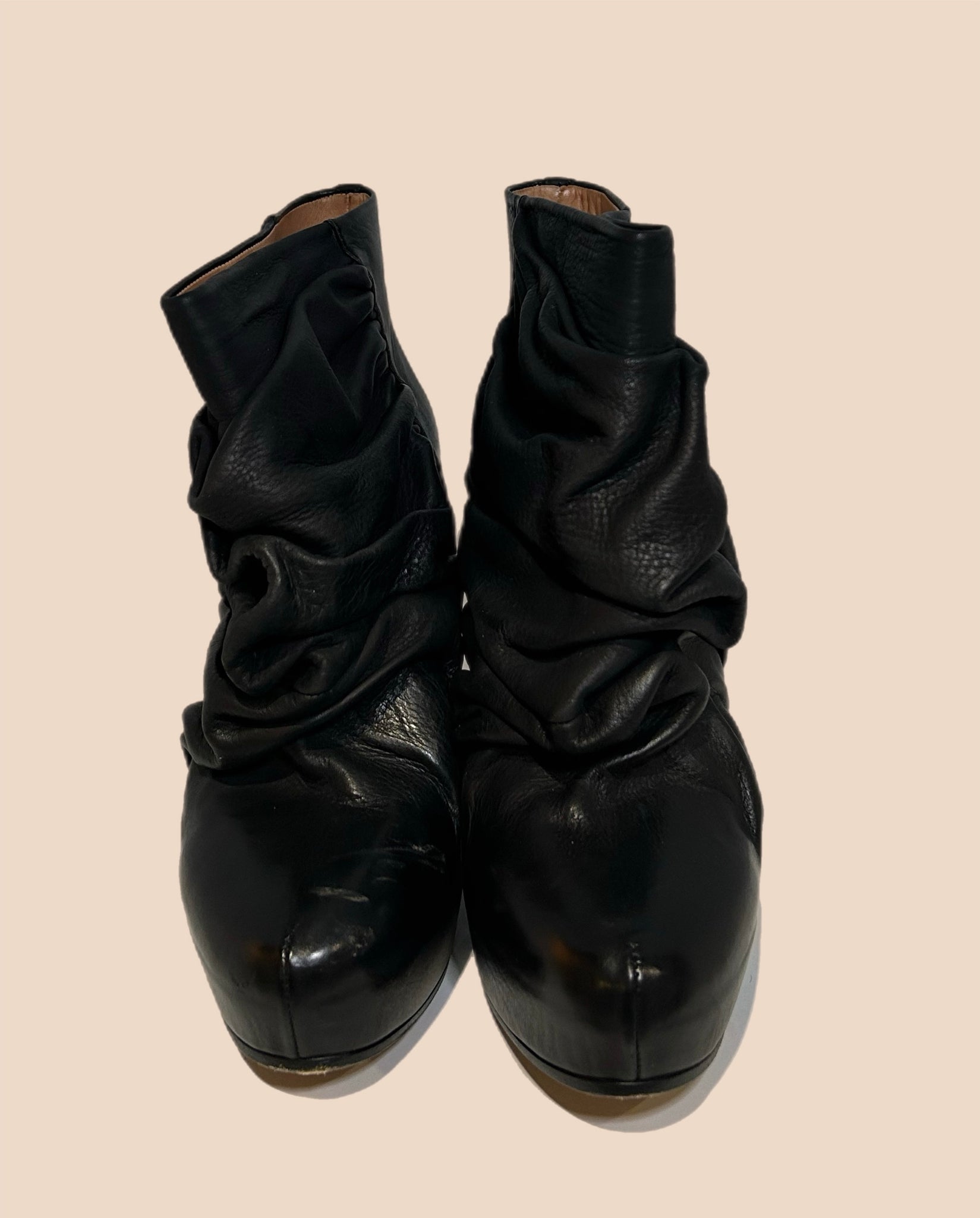 Unique and very visually interesting black leather Maison Margiela boots. They have a very sci-fi and futuristic look to them.