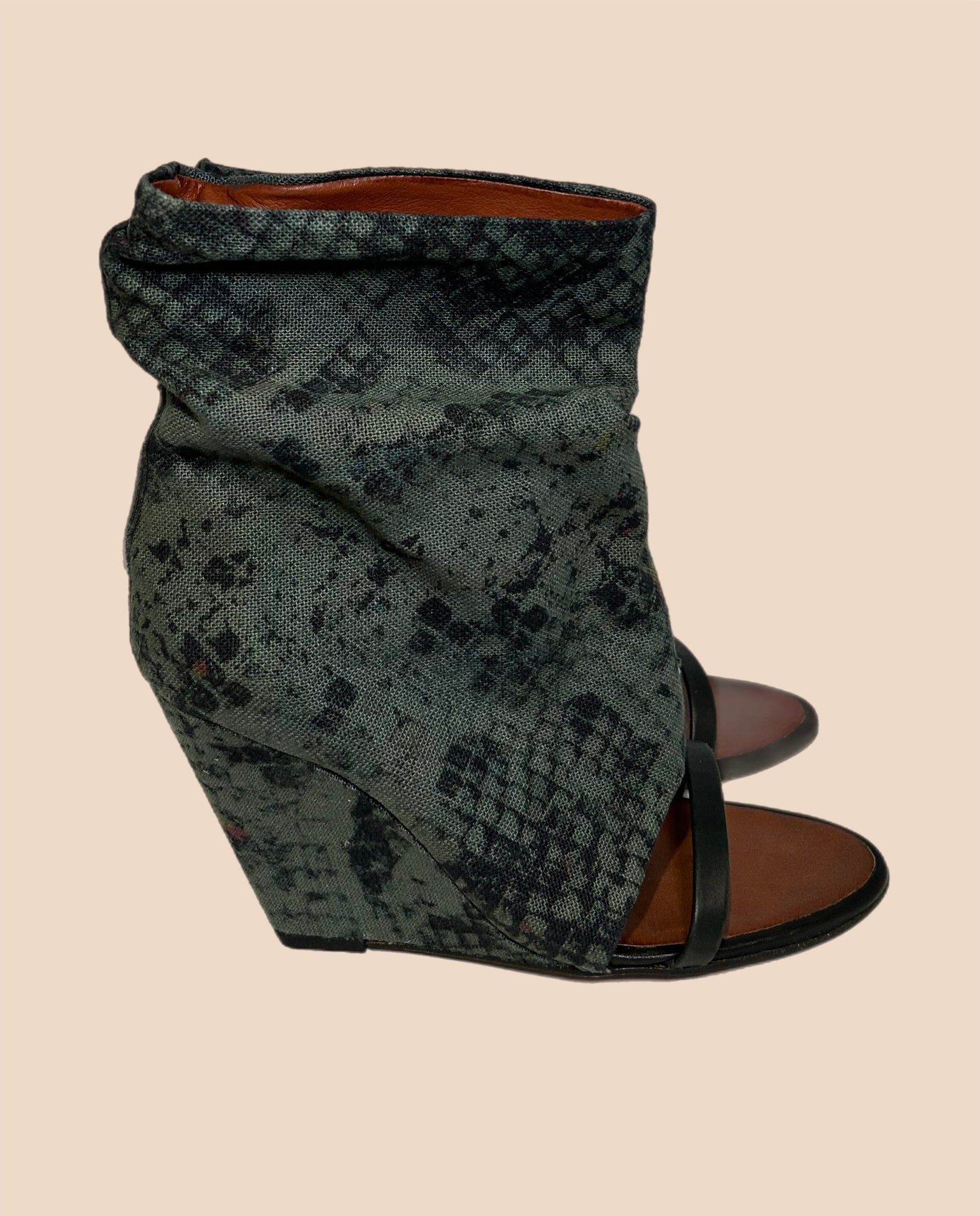 Iconic Isabel Marant boot with a Canvas body,  python print and a wedge style. Glamorous and sharp these boot sandals look amazing on the foot.