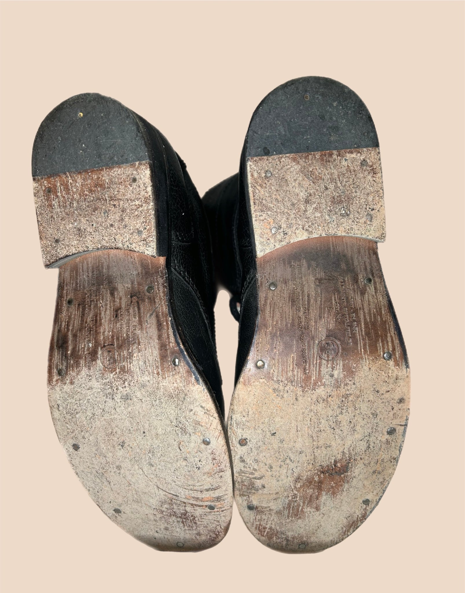 Size 38 and fits true to size. No heel.